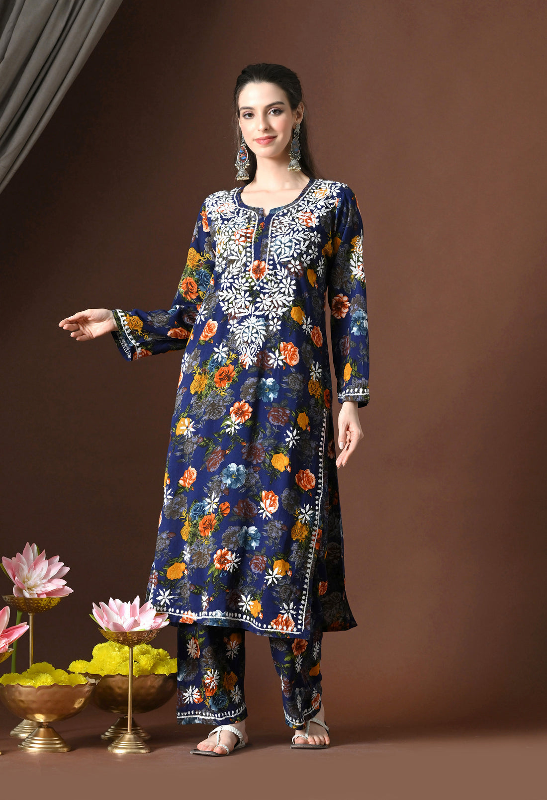 Rosy Meadow Printed Rayon Chikankari Suit Set