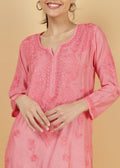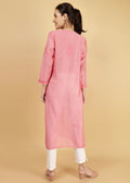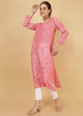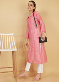 Chanderi Silk Hand Embroidered Long Pink Festive Kurta