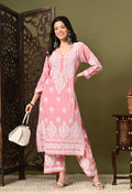 Chikankari (3D) Work on Modal Fabric-Pastel Pink