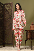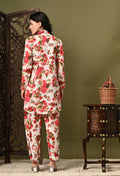 Chikankari Cord Set in Mulmul Set - Floral Print Red
