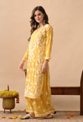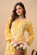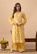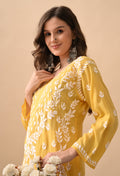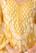Dark Yellow Modal Hand-Embroidered Chikankari Kurta Pant Set