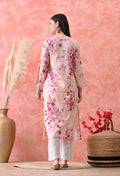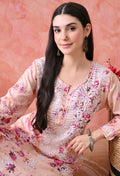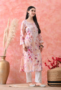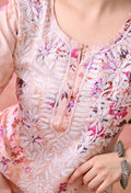 Floral Print Mulmul Pure Cotton Lucknow Chikankari Kurta - Light Orange