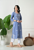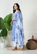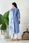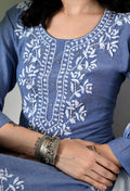 "Hand Embroidered Chikankari & Cut Dana Work Denim Cotton Kurta Set with Tie-Dye Dupatta "