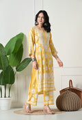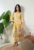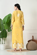 Hand Embroidered Chikankari Modal Plazo Set 3d Work-Yellow