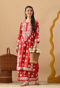 Hand Embroidered Chikankari Plazo Set 3d Work- Cherry Red