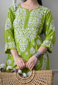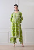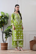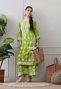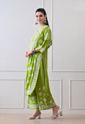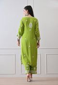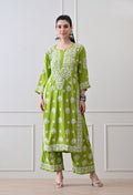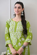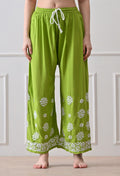 Hand Embroidered Chikankari Plazo Set 3d Work- Parrot Green