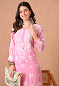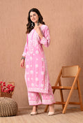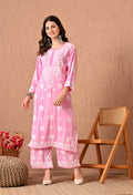 Hand Embroidered Chikankari Plazo Set 3d Work- Pink