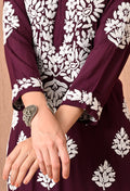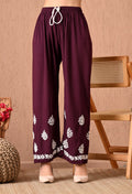 Hand Embroidered Chikankari Plazo Set 3d Work- Wine