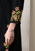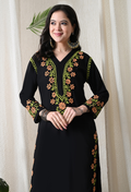 Elegant Black with Vibrant Blue & Pink Floral Handwork