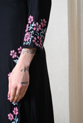 Elegant Black with Vibrant Blue & Pink Floral Handwork
