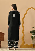 Hand Embroidered Chikankari Rayon Plazo Set 3d Work- Black