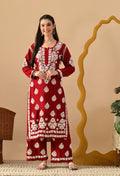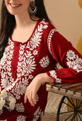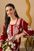 Hand Embroidered Chikankari Rayon Plazo Set 3d Work- Maroon