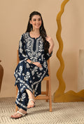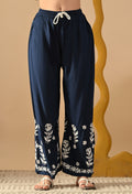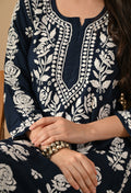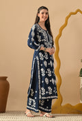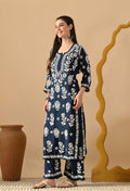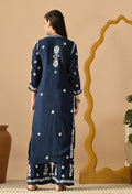 Hand Embroidered Chikankari Slub Rayon Plazo Set 3d Work-Teal Blue