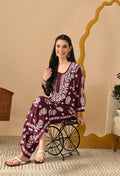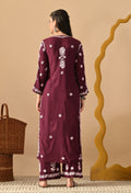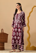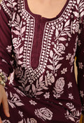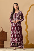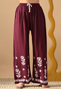 Hand Embroidered Chikankari Slub Rayon Plazo Set 3d Work-Wine
