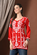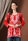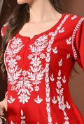 Lucknowi Chikankari Short Kurta in Rayon – Red