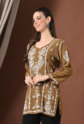 Lucknowi Chikankari Short Kurta in Rayon – Taupe
