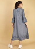 Mulmul Hand Embroidered Knee length Chikankari Dress Grey