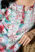 Multi color Mulmul Pure Cotton Lucknow Chikankari Kurta -Lavender
