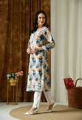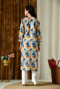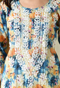 Multi color Mulmul Pure Cotton Lucknow Chikankari Kurta -Teal & Orange
