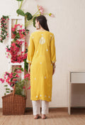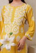 Mustard-Embroidered Rayon Chikankari Straight Kurta