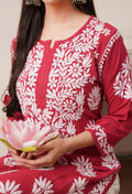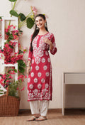 Onion Pink-Embroidered Rayon Chikankari Straight Kurta