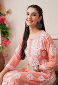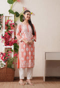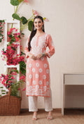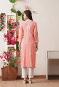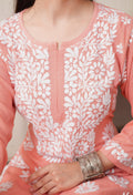 Peach-Embroidered Rayon Chikankari Straight Kurta