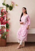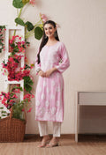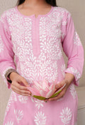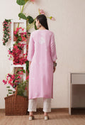 Pink-Embroidered Rayon Chikankari Straight Kurta