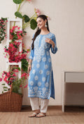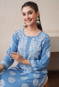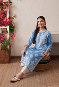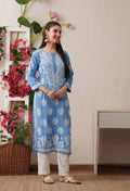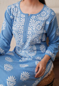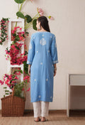 Sky Blue Hand-Embroidered Rayon Chikankari Straight Kurta