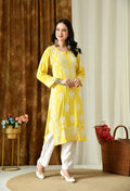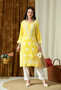 Sunshine Yellow Modal Hand-Embroidered Chikankari Kurta with Elegant White Floral Design