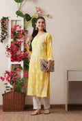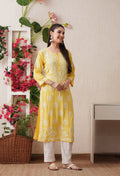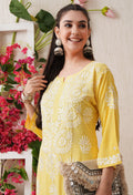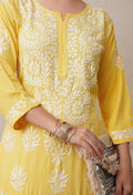 Yellow -Embroidered Rayon Chikankari Straight Kurta