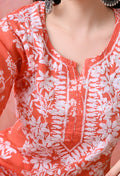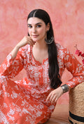 Hand Embroidered Chikankari Mulmul Plazo Set – Floral Delight Orange