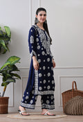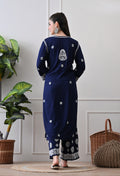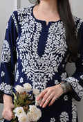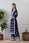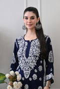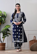 Hand Embroidered Chikankari Plazo Set 3d Work- Dark Blue