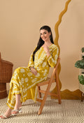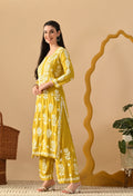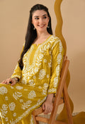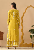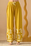Hand Embroidered Chikankari Slub Rayon Plazo Set 3d Work-Yellow