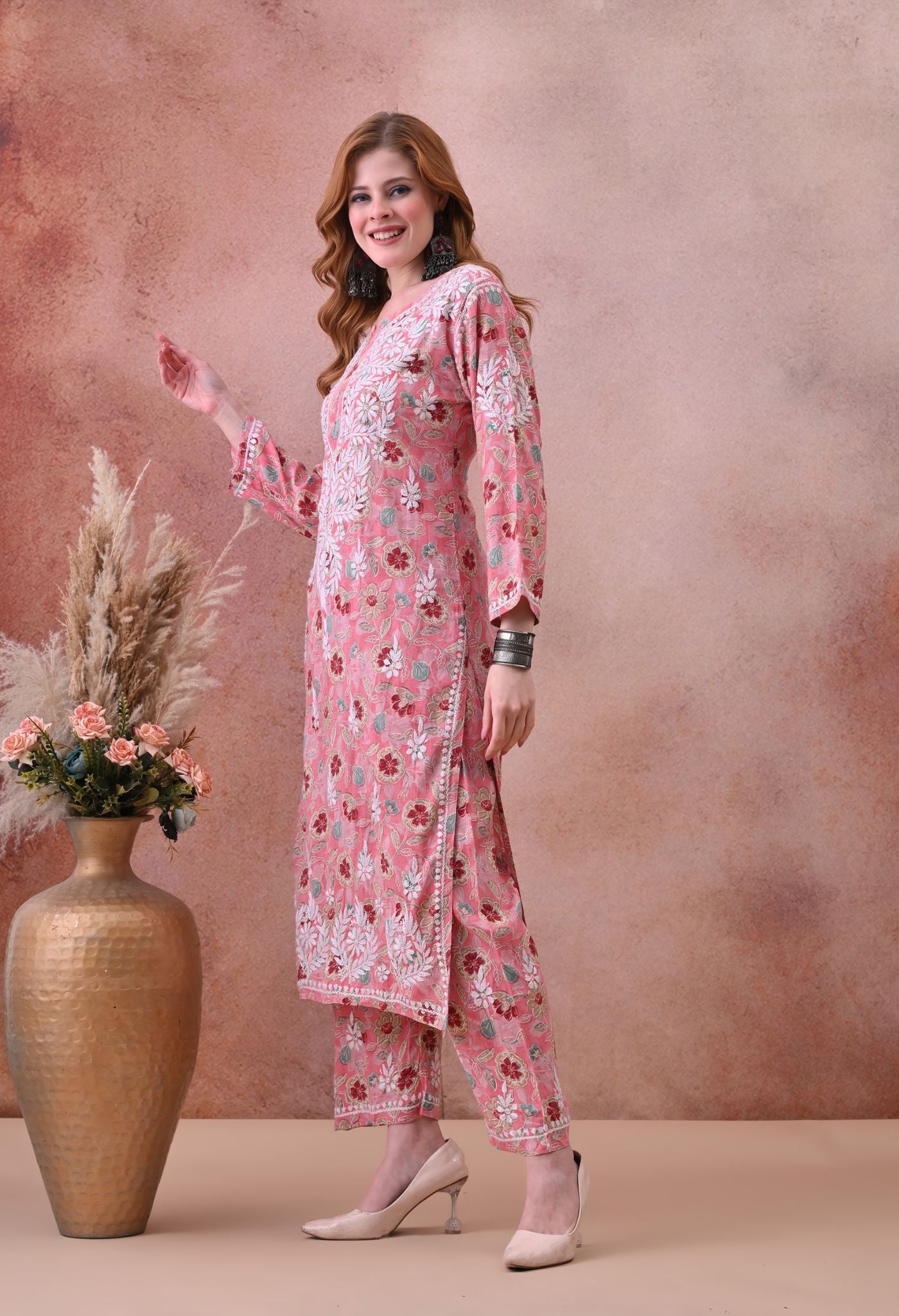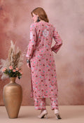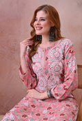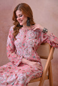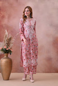 Pink Hand-Embroidered Chikankari Rayon Kurta & Pant Set