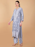 Pure Modal Heavy Bota Pattern hand embroidered Chikankari Kurta Set -Grey