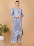 Pure Modal Heavy Bota Pattern hand embroidered Chikankari Kurta  Set -Grey