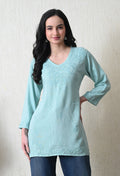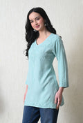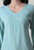 - Colour: Aqua Blue with Tonal Chikankari Embroidery