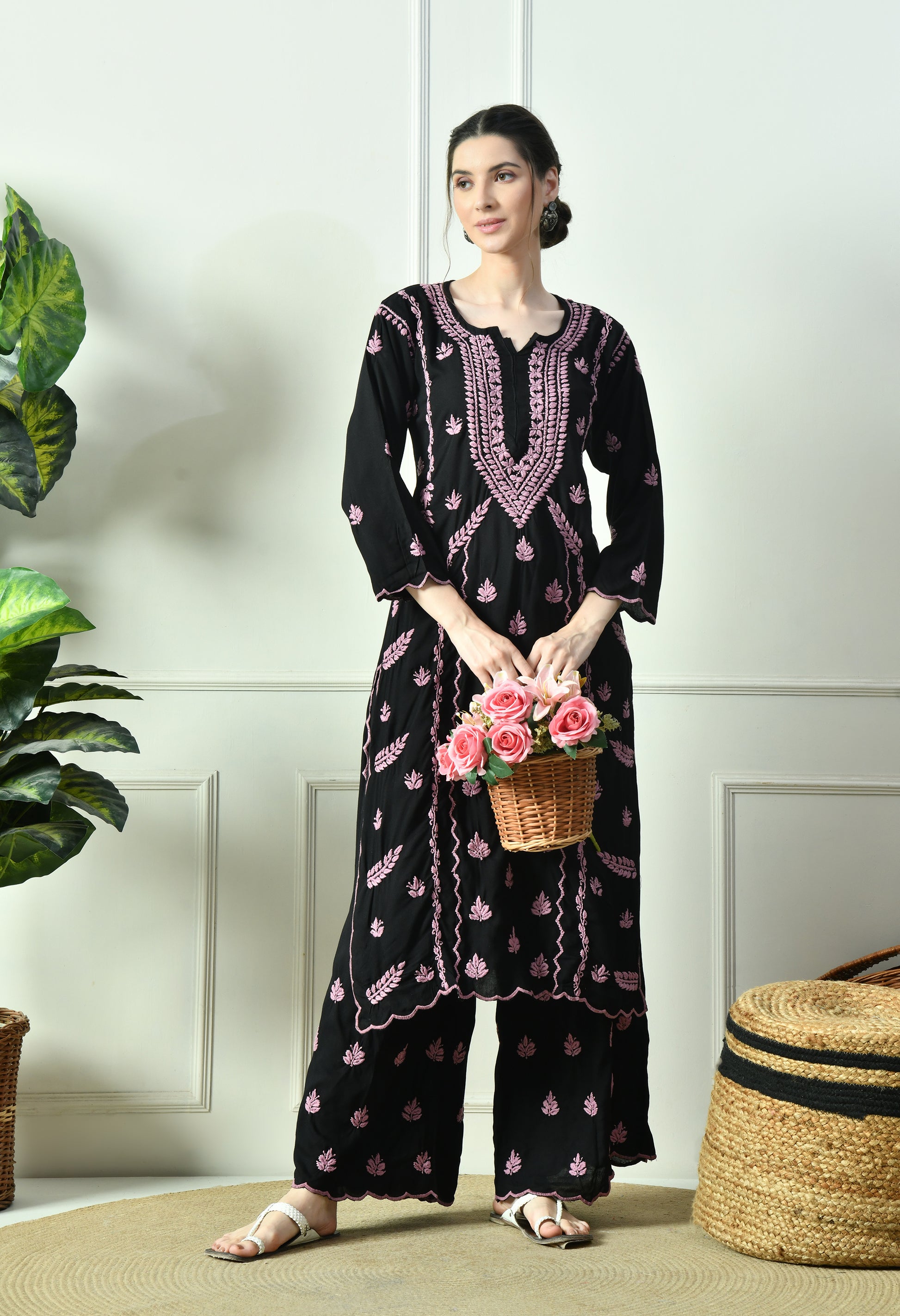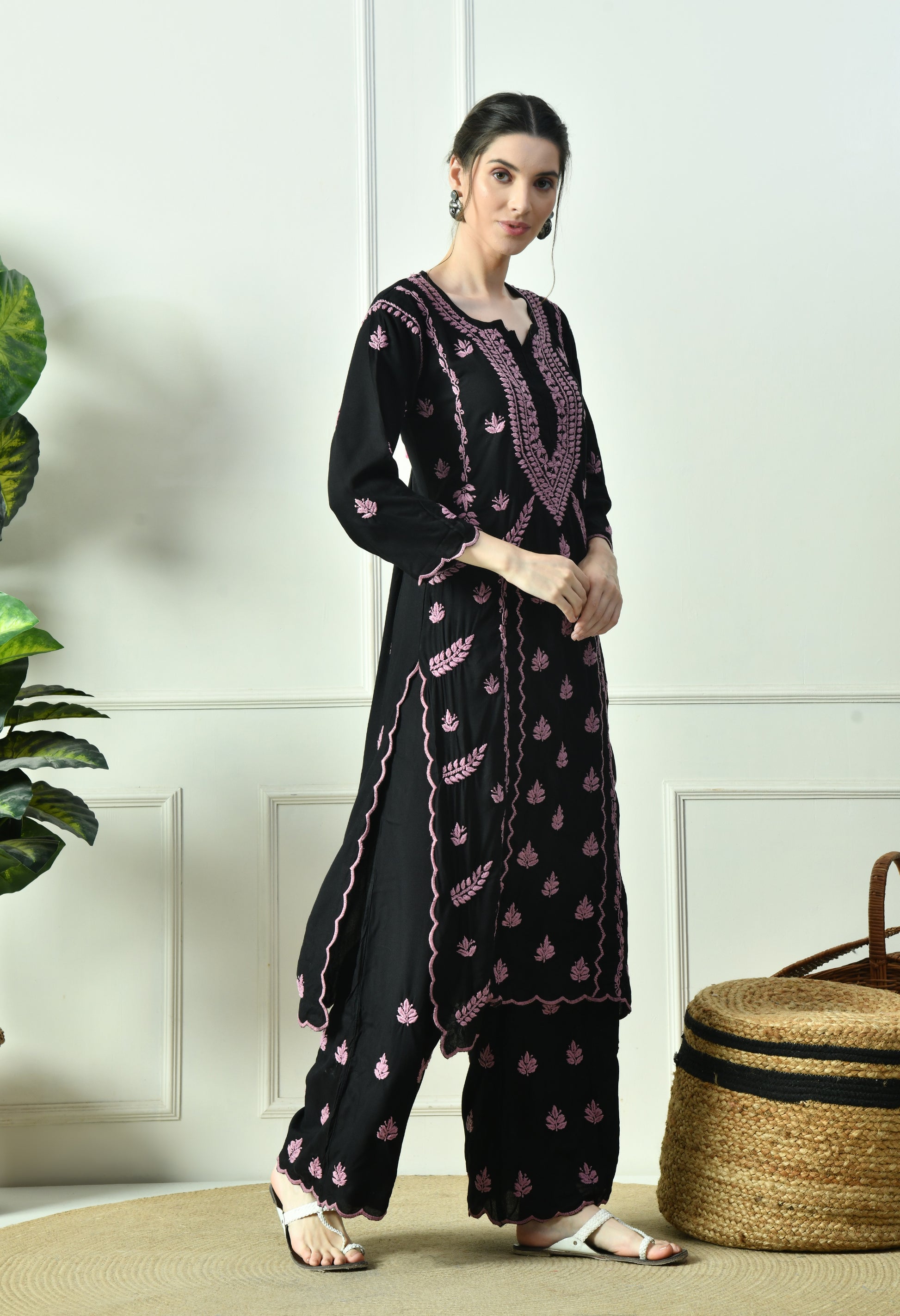 Step into timeless elegance with our Black Beauty Vibrant Chikankari Set, beautifully handcrafted on rich black fabric with striking Purple Chikankari embroidery. The intricate hand embroidery adds a bold yet graceful contrast, making this set a perfect blend of tradition and modern sophistication.