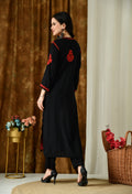 We recommend gentle hand wash or dry cleaning to preserve fabric quality, color, and detailing.
