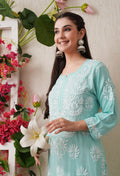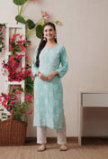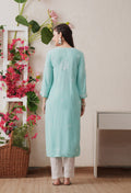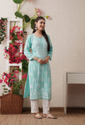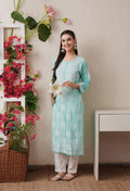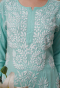 Bottle Green Hand-Embroidered Rayon Chikankari Straight Kurta