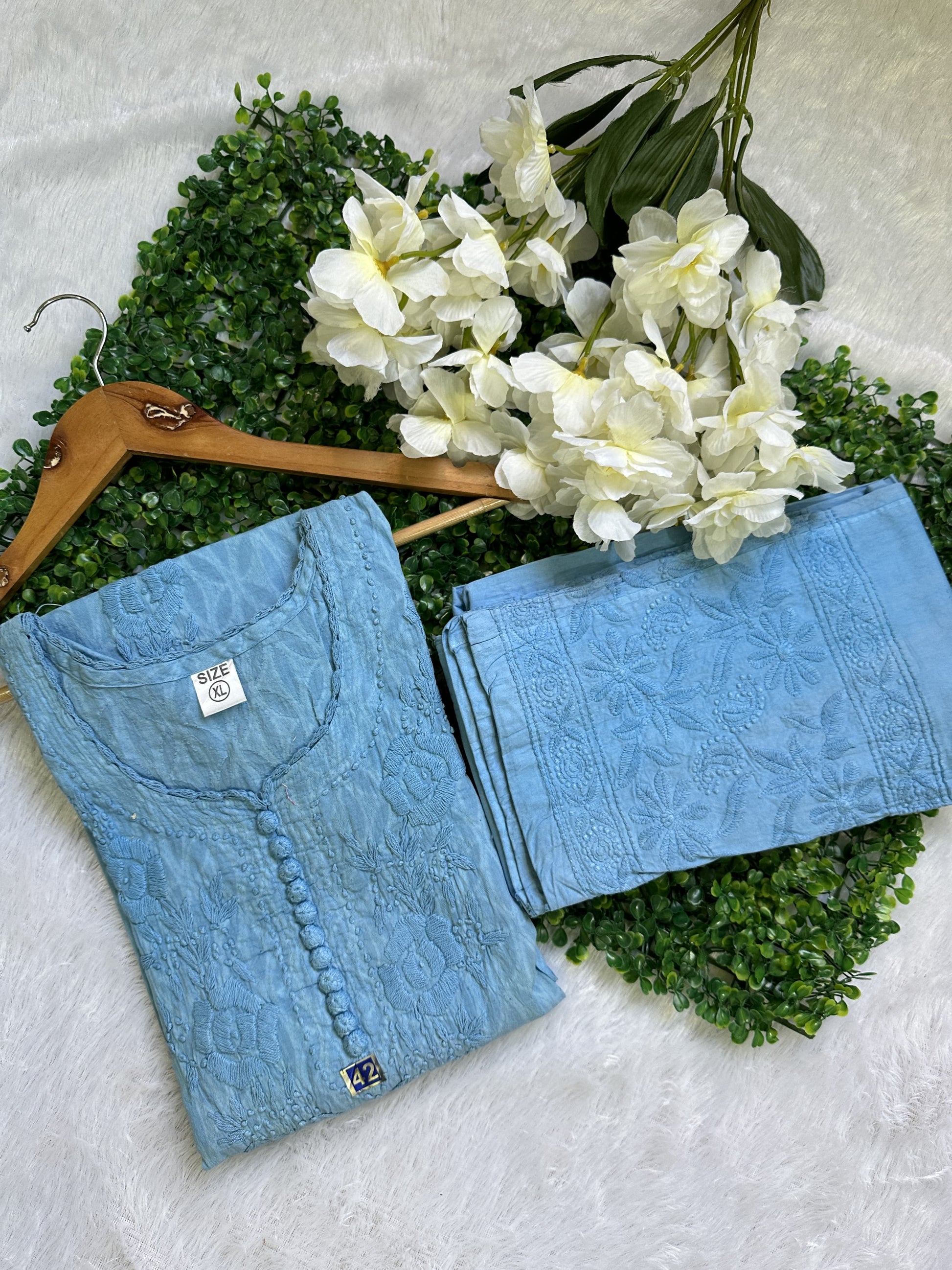 Chikankari on cotton braso fabric represents a harmonious blend of traditional craftsmanship and modern fabric textures, it combines the beauty of hand embroidery with the unique texture and transparency of the braso material .
