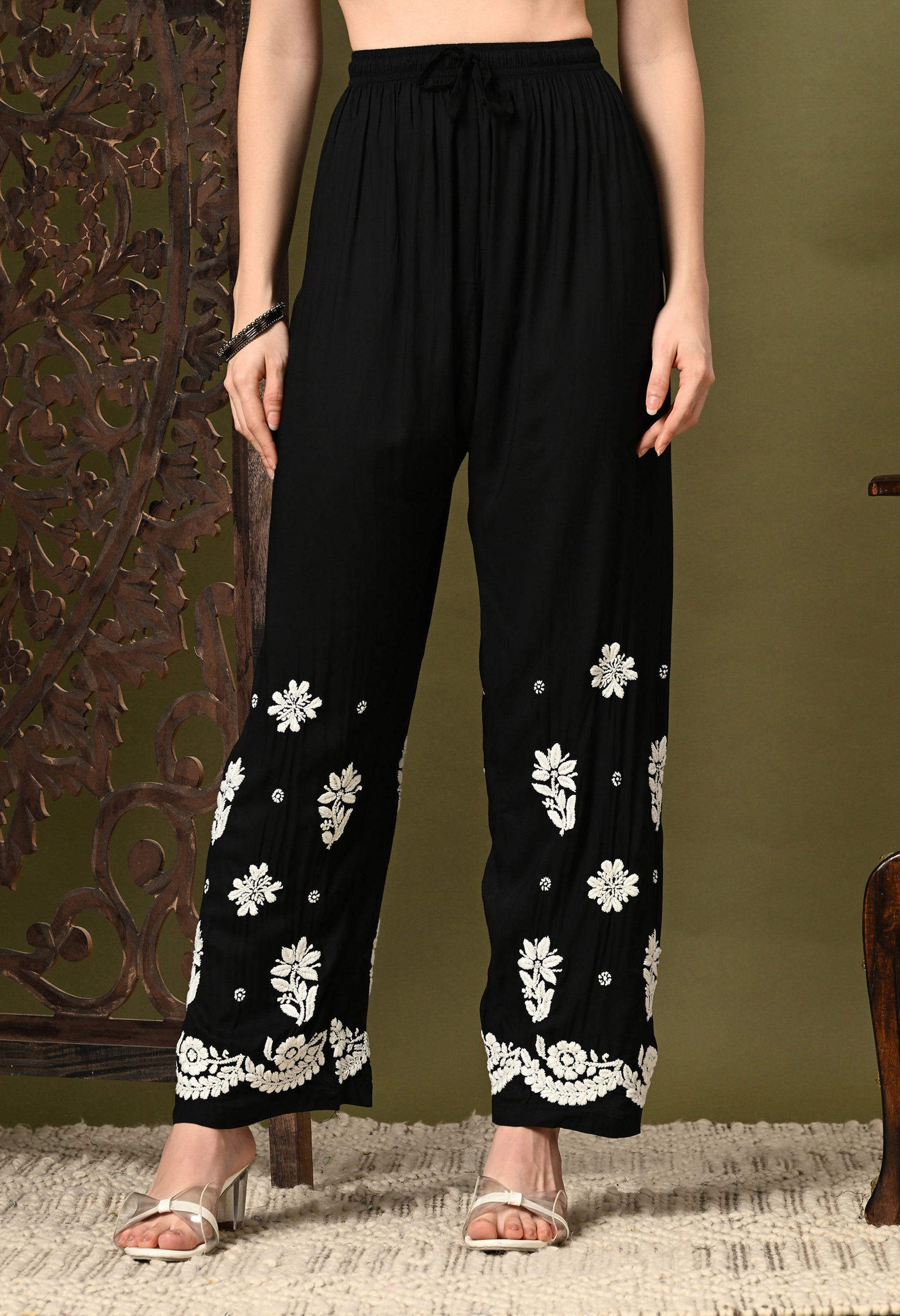 The intricate chikankari embroidery transforms the tunic into a masterpiece, showcasing impeccable craftsmanship that adds an ethereal touch to your ensemble. The enchanting shade of blue is not just chosen for its visual appeal but also for its ability to complement a diverse range of Modal tones, allowing you to radiate confidence and style effortlessly.