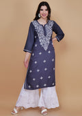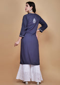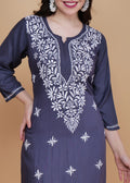 Chikankari Hand-Embroidered Rayon Straight Kurta Grey