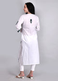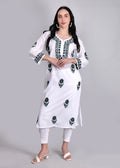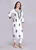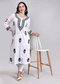Chikankari in Mul cotton Kurta for Women - White with Green
