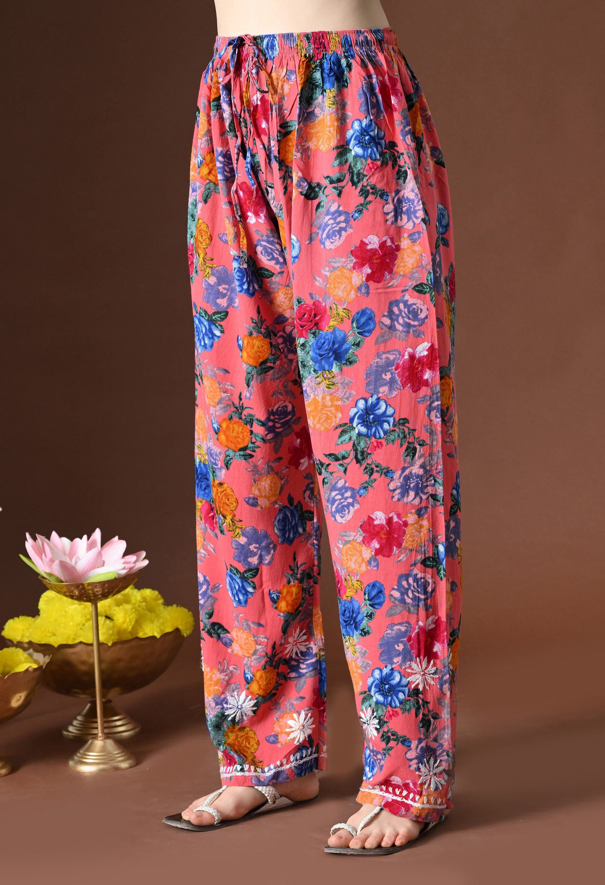 Experience timeless elegance with this rayon chikankari kurta & palazzo set, crafted with intricate hand-embroidered floral motifs.