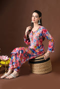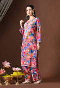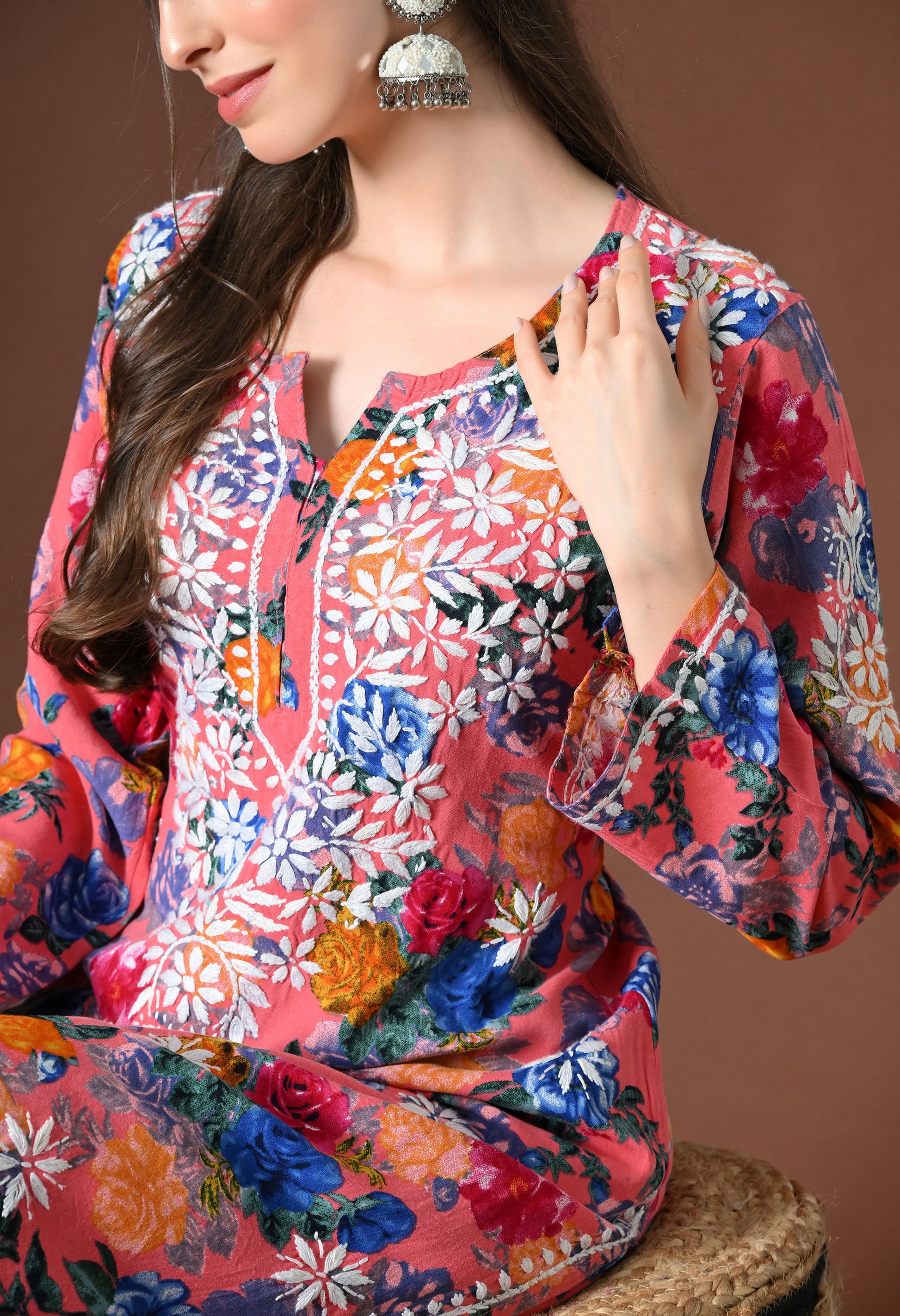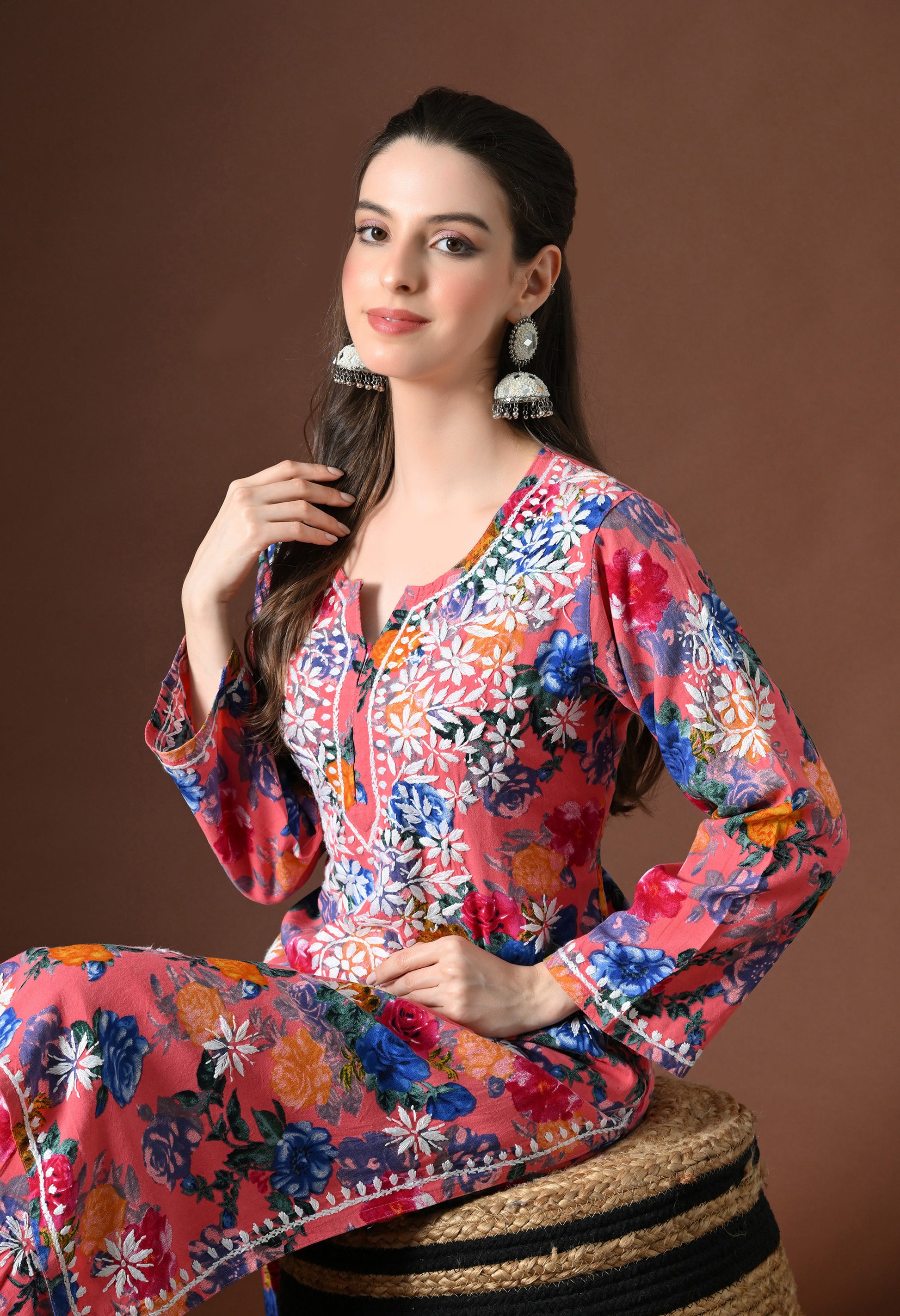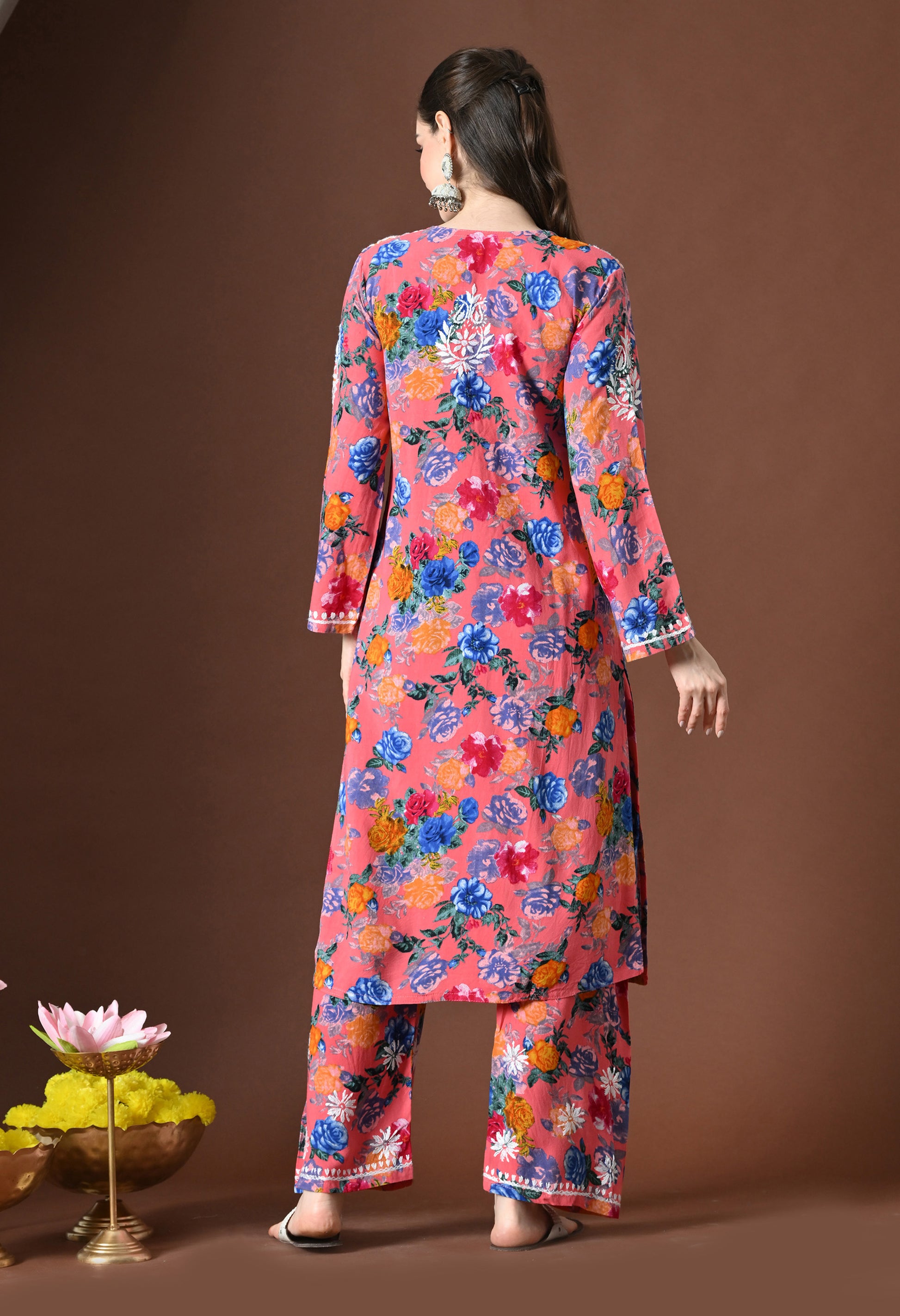 Floral Bliss Hand-Embroidered Rayon Chikankari Set – Pink