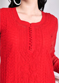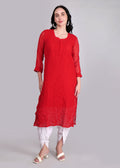 Geogette Hand Embroidered Calf length Chikankari Red Kurta