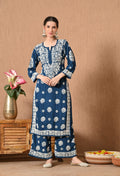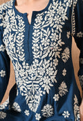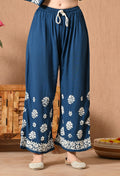 Hand Embroidered Chikankari Rayon Plazo Set - Teal