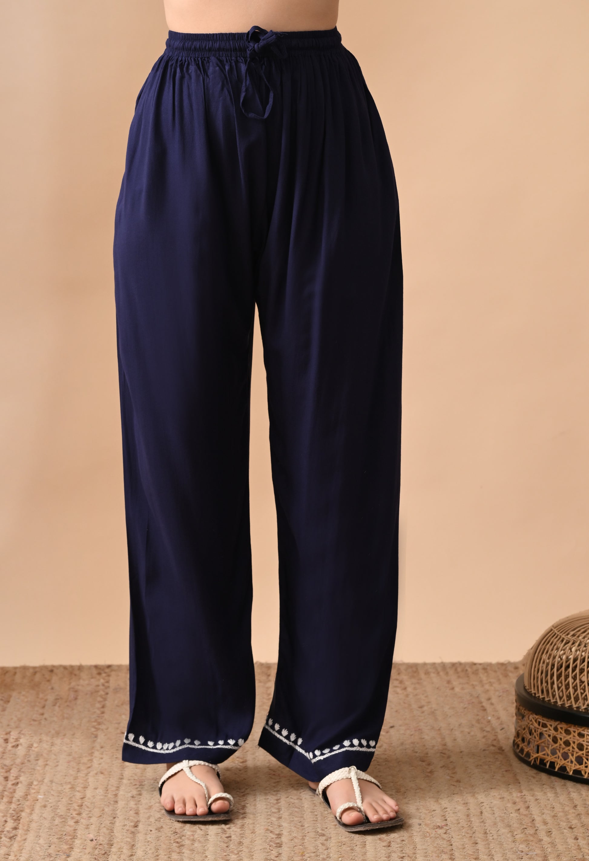 - Embroidered wide-leg pants