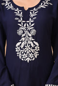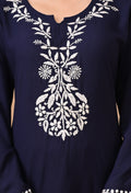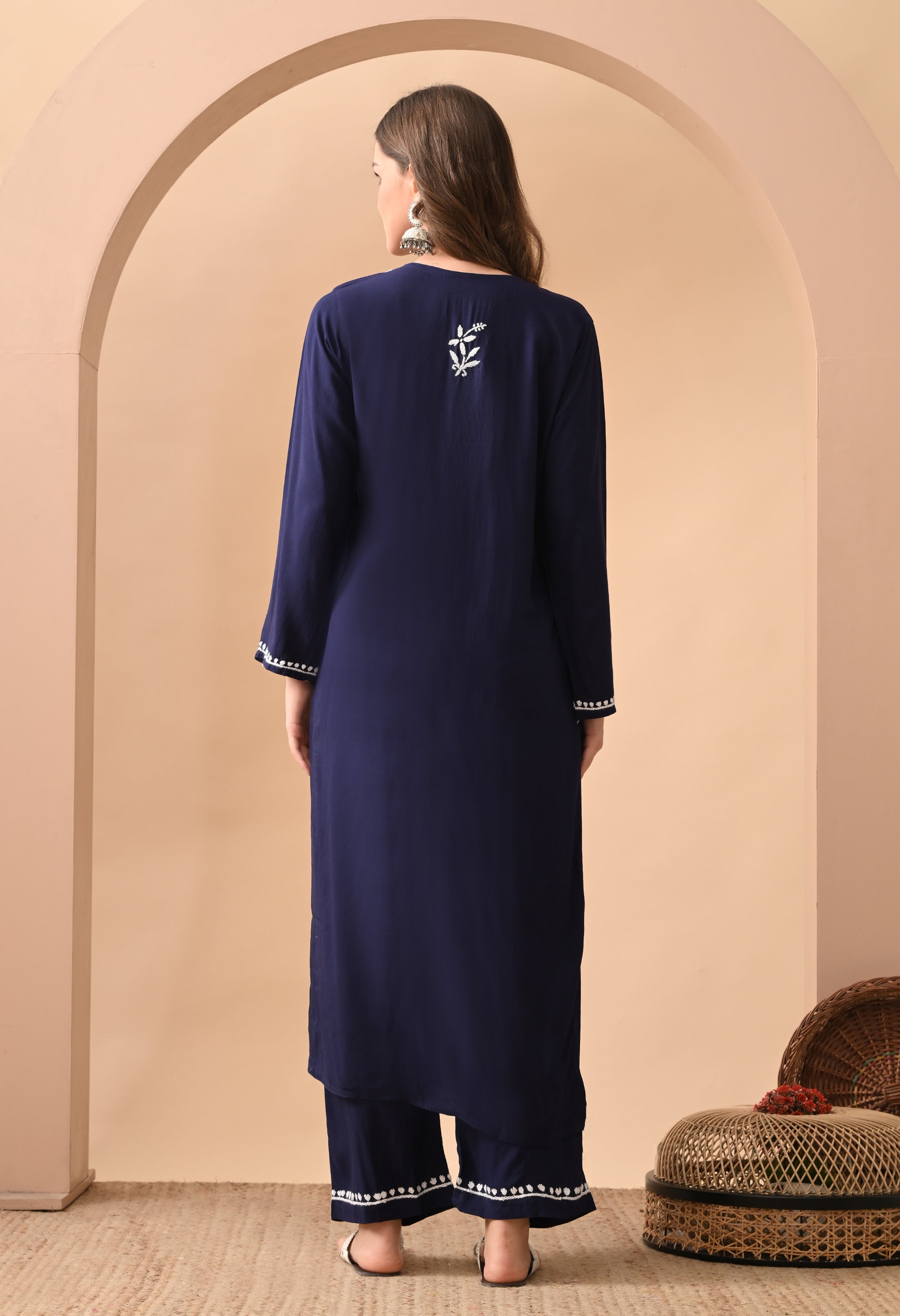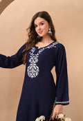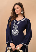 Hand-embroidered Lucknowi Chikankari Kurta Plazo Set – Navy Blue & White